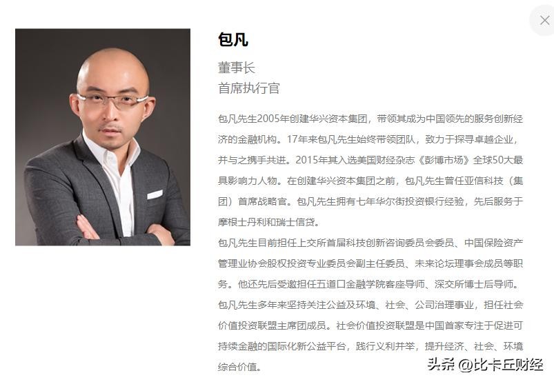 据公开资料,包凡持有华兴资本48.81%的股本合计2.77亿股,为上市公司华兴资本的控股股东,并且还担任着华兴资本董事会主席、执行董事兼首席执行官等职。