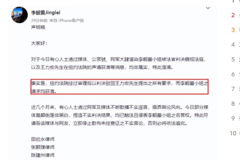 面对汹涌的舆论,李靓蕾也做出了回应,表示自己可没输掉官司,而是王力宏的请求被驳回了。