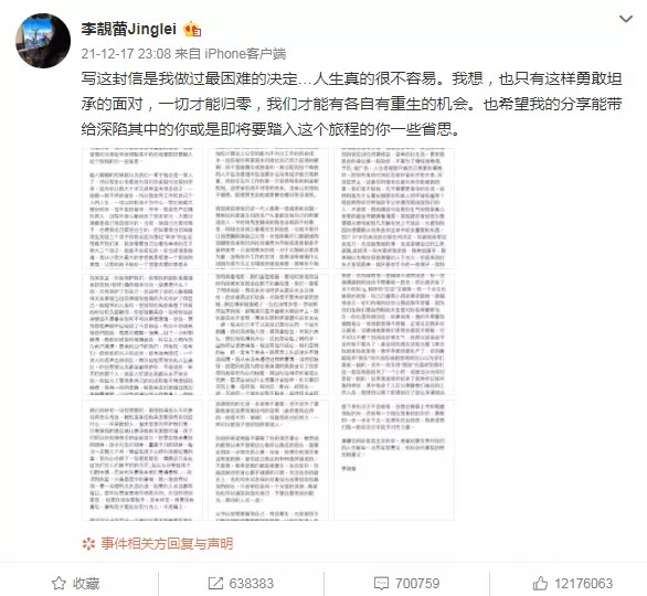 在“小作文”里,李靓蕾历数了王力宏的多桩“罪状”:婚内出轨,PC,和女明星存在不正当关系,家庭冷暴力,丧偶式育儿,和家人联合转移财产……