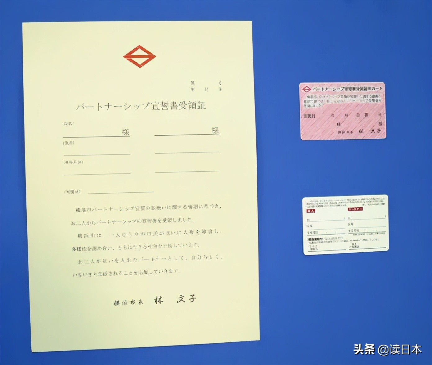 去年,日本神奈川县横滨市开始实施同性伴侣的“宣誓证书制度”。获得证书后,能够以家人身份享受某些政策或优惠条件。