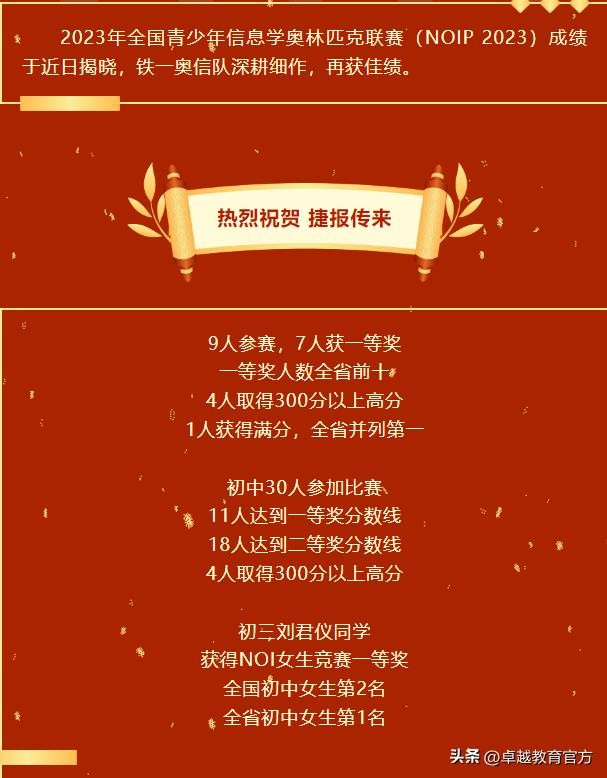 在更专业产品升级的加持下,卓越i01编程学员取得了优异的赛事成果,累计2000+位学员获得省级以上白名单赛事奖项。在2023年CSP认证中斩获佳绩:卓越信息学集训队44位队员获奖,获奖率达93.6%。报考2022CSP认证学员100%获奖。连续3年,等级考试通过率在行业均值10个点以上。