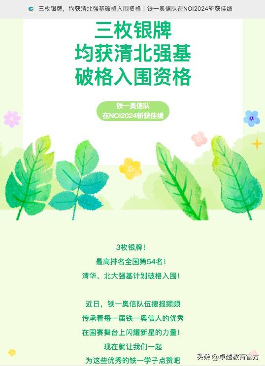 “学习信奥,可以作为孩子升学路上的重要筹码。从更长远的角度来看,对于孩子来说,学习信息学,特别是信奥,是一条‘进可攻,退可守’的路径。作为一项高含金量的竞赛,信奥赛的参与难度自然是高的,但并不代表只有走到最后的竞赛阶段才有价值。在学习信息学过程中所培养的逻辑思维能力、抗压抗挫能力、团队协作精神,也会帮助孩子在未来的学习、生活和工作中,更加有条不紊地应对各种问题。”