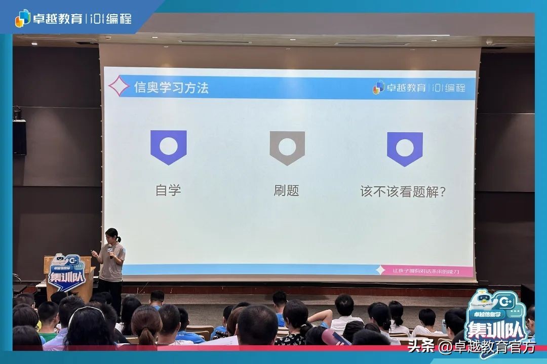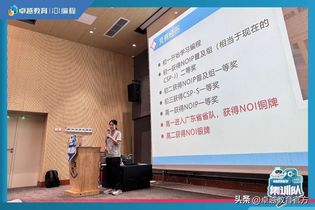 此次信奥CSP集训营开营仪式上,不仅有资深竞赛教练解读入营的目标和营地安排,更有大咖助阵,分享信奥学习心得及建议,共同为卓越i01编程CSP集训营的学生们保驾护航。