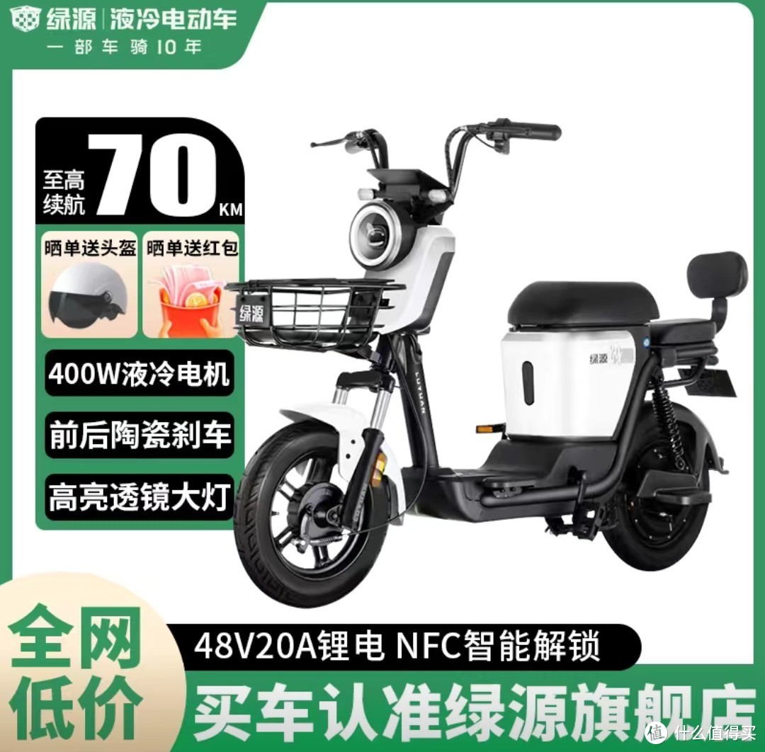 我觉得如果你想买一款绿源入门级别的可提锂电池电动车,这一款目前性价比最高,当然618期间我会推荐价格2600左右的K5。它的电池容量为20Ah续航70km,可以满足日常基本需要。另外它还有NFC钥匙,车篮后座等配件也齐全,整体性价比不错: