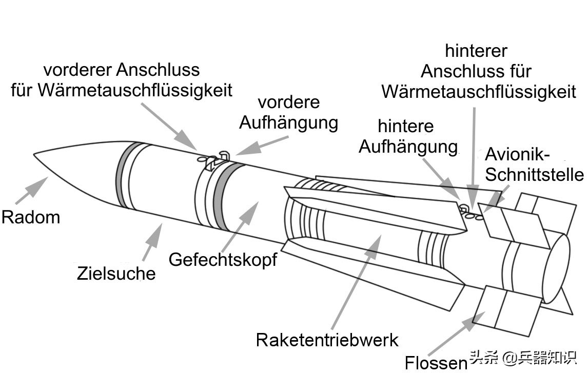 ▲ AIM-54A“不死鸟”空空导弹的部分结构示意图