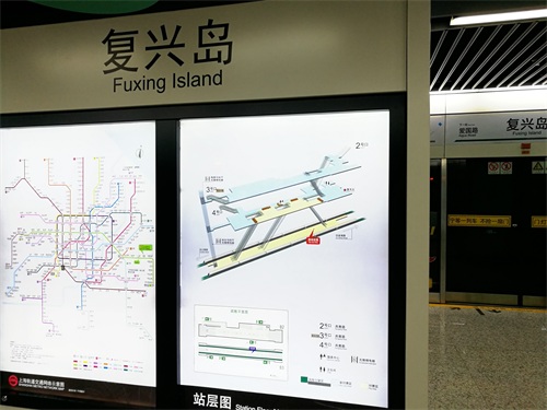 注意下面的地方就是复兴岛地铁站的上层的站厅,这个地方在上海的其他的大多数地铁站都是没有的,而是从地面下去就是一层的站厅,从展厅下去就是站台。