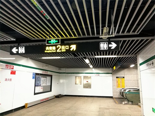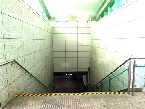 下图是在复兴岛站的站台通向下层站厅的地方,指向是2号出口,也就是是直通上海地铁12号线复兴岛站上层站厅的电梯。