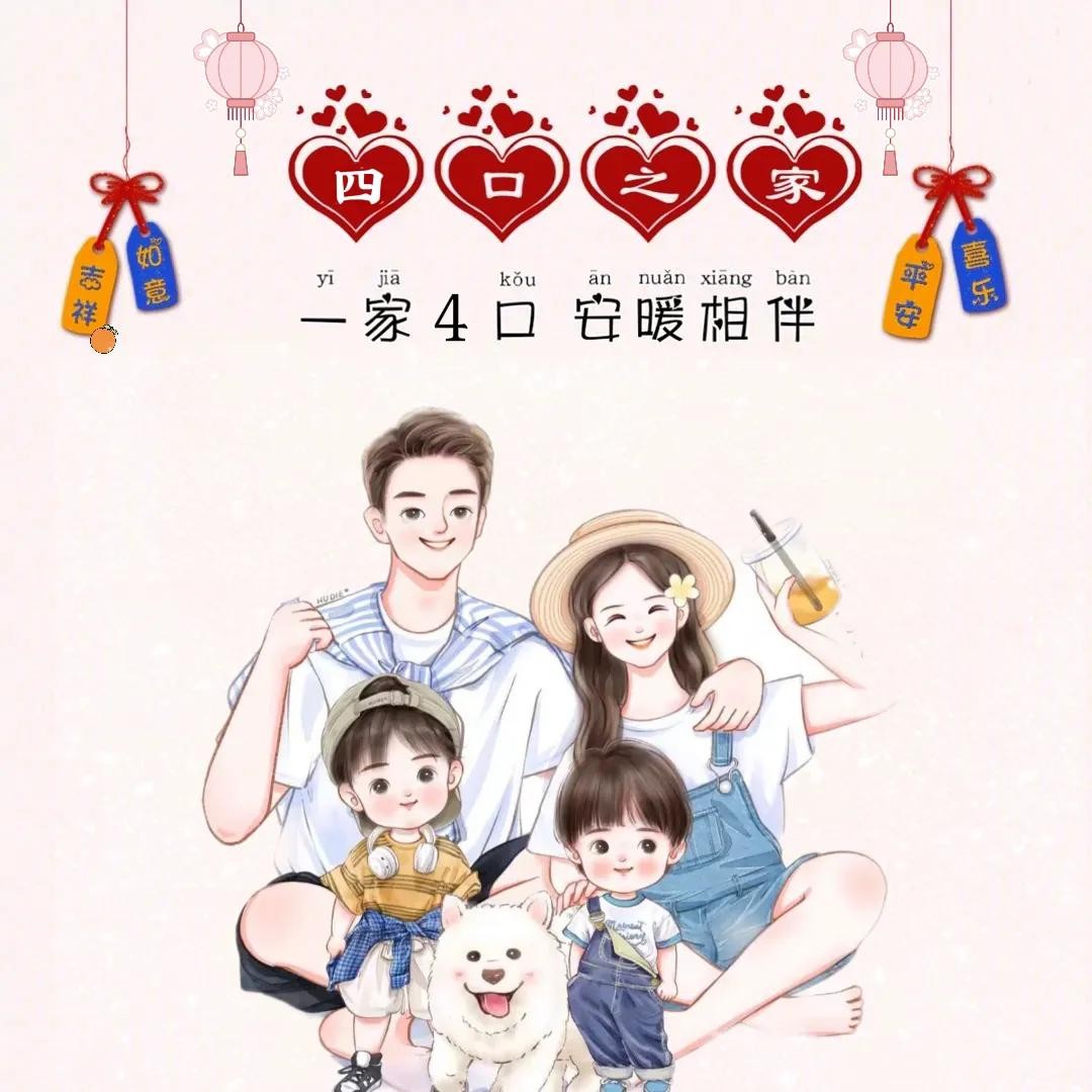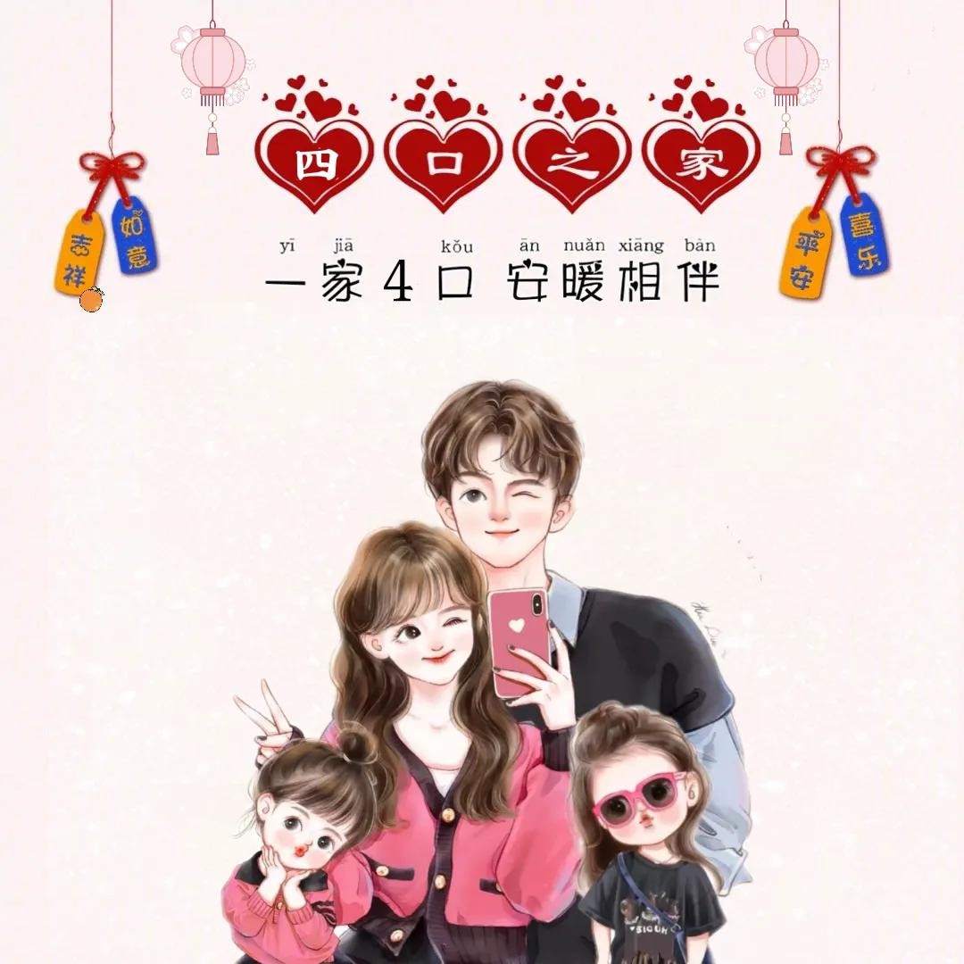 一家四口,安暖相伴!全家福亲子头像,无偿做图中,欢迎留言!