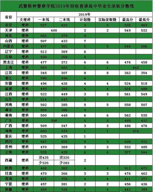 我们都知道位于北上广深的这四座城市的高校的分数不低,同时军校的招生分数都不是很低,但是位于北京的武警特种警察学院的在2019广东的录取分数并不是很高,而且最低的录取分数线,比在广东省内的公办高校的分数都还要地,成为了一所性价比无比巨大的军校。在广东想要报考军校的同学,可以注意一下这所高校。2019年武警特种警察学院2019在广东的录取分数最低分数是432分,比广东省内的公办高校,例如广东石油化工的最低录取分数线447少了十几分,广东石油化工学院几乎是广东省内公办高校中录取分数线最低的一个。说明这所军校被人“捡漏”了。