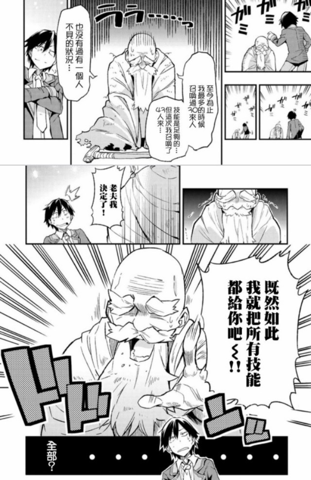 2.看下面几张图,让我们猜测一下漫画名称。关于我被召唤到异世界由于落单被一个自称老头的神赋予全部技能这件事,标准轻小说改漫标题,hh。