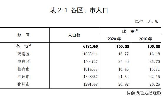 茂名市各区市人口一览:全部区市都超百万人,人口最多为电白区