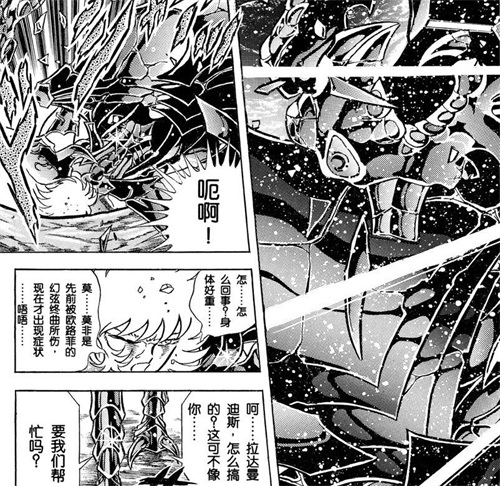 两人在第五狱第二次交手,拉达已被奥路菲和星矢的攻击造成了不小的伤害,而加隆吃过一次亏后,依靠二次定律接下了拉达的大招,随后放银河星爆,这次换拉达中招。两次交手双方仅仅是没躲过对方的大招而已,既然是大招哪有那么容易躲,中一招不是很正常的事情吗?第一次交手加隆中招后能起来再战,那为何第二次交手拉达就不能起来再战?他毫无经验首次硬吃银河星爆都没死掉,下次有经验了不是更容易闪避吗?还有他的灰暗警戒被加隆接下了,之后就不能还有别的招吗?艾亚哥斯也不是只有一招吧,所以在一方彻底倒下之前没法说是谁更强,而且所谓的必杀奥义必须一击干掉对手,否则双方相互熟悉了招数就会陷入僵持的千日之战;所以加隆和拉达、顶金与巨头最后的同归于尽是合情合理的。