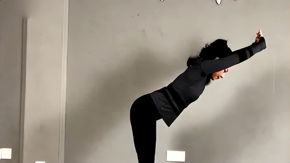 2.单脚向后向上伸直,逆时钟在空中画圆10圈