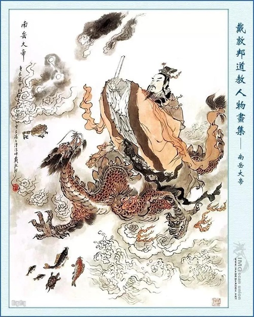 南岳大帝:南岳衡山司天昭圣大帝、南岳圣帝、司天王、司天昭圣帝、安邦护国大天尊、南岳庆华紫光注生真君。姓崇名黑虎(一说姓丹名灵峙。一说姓崇名覃,道号武真子)。坐骑为火眼金睛兽。兵器为两柄湛金斧。