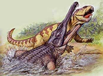 那么残暴的鳄鱼幸亏早已灭绝了,要不然人类老祖先可要吃苦头了。