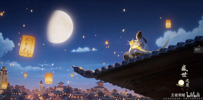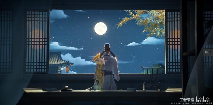和之前许多皮肤一样,除了游戏内推出的皮肤,《王者荣耀》推出了一系列宣传片和皮肤宣传视频,就我所见,这些视频和商业关联极低,和文化关联极高,甚至可以说就是文化宣传片。在这些制作精良的视频里,李白、月亮、诗歌层层铺开,所有视频都弥漫着温暖而浪漫的气氛,最后的落脚点则是对人的思念和关怀。