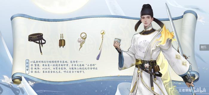 这让 " 月 " 成了李白皮肤的主基调。根据官方介绍,这次李白皮肤的主色调是象征 " 明月光 " 的月白色,而服饰纹样、武器、蹀躞带等装饰细节,也结合李白与明月相关的诗词,进行了幻想化演绎。。