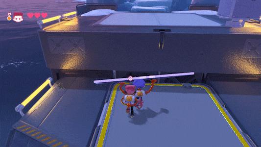 比如飞喵队长吸取并提起物品的功能,不仅能用来拉起桶盖,或拉起板子来搭桥,在战斗里也能出一份力。像是在遇到某个身穿盔甲、只有屁股是弱点的 BOSS 时,因为位置不好,我一直打不到它的屁股,僵持半天后,我们决定合作用飞喵队长把它提起来,换个方向扔到地上,这才有机会打到屁股了。