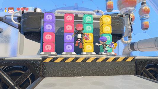 比如教学关开始没多久,我和队友遇到几串不同颜色的箱子,我迅速切换颜色嘣嘣几枪给它全三消掉。队友直接被我气笑了:" 这不是让你三消的啊,你没看出来它是让我们按 1-2-3-4 去排列吗,不然怎么上去?" 那一刻我突然觉得有些长脑子:原来这游戏是要利用颜色消除的机制,而不是所有东西都该三消处理……