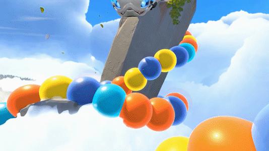 再比如,《泡姆泡姆》里大多数怪都是可以直接三消处理的,但个别怪需要特殊处理,像下图这只怪,拿同种颜色打它的脸是没用的,只会让它的脸换色,并不会让它变短、消除,必须从尾部打,才能消除。