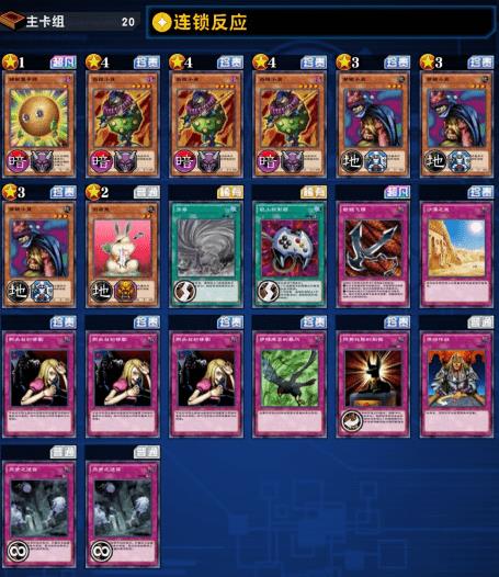 带了连锁反应能加快获胜,再补充了一点苟命卡(锁链飞镖看情况选择效果,不不要无脑加自己怪的攻击力,可能关键时候卡了自己的格子)和一张龙卷(遇到白龙气球或者心震壶时神抽一张救命了)。