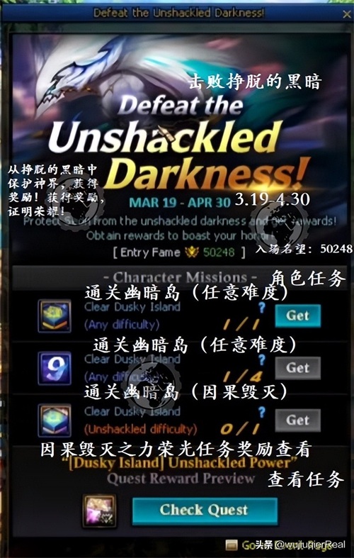 参考国服同名活动。完成幽暗岛相关的活动任务即可领取奖励。