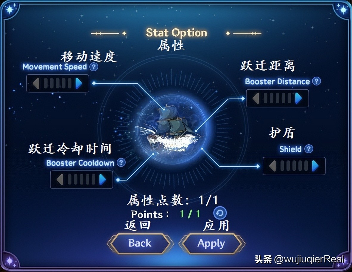 小船可以升级属性。属性点数可以在第一次通关该关卡的普通级或冒险级时获得。移动速度,跃迁装置冷却时间,跃迁距离,护盾。每种属性最多可以升级到五点。请合理使用属性点数以通关活动关卡!