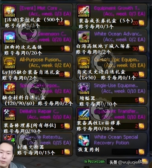 装备属性Lv转移券:神界访客硬币2个,账号每周10个