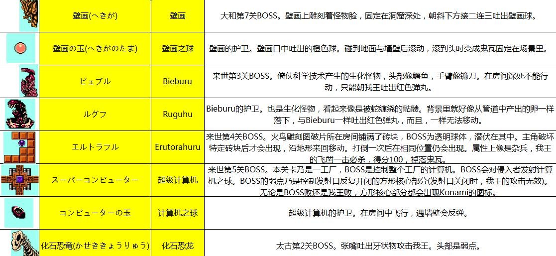 本作BOSS攻击力完全相同,我王每次受伤,只少一颗心。与FC三目童子的HP设定完全一样。