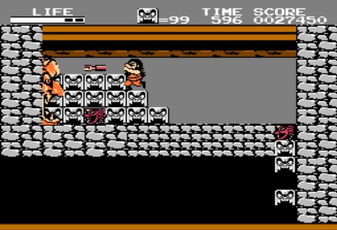 有些关卡的沟太宽了,或者高台太高了,必须依靠鬼瓦铺路才能前进。鬼瓦可以放置到空中,成为主角的垫脚石,充分利用鬼瓦的功能,可以正面阻挡敌人,可以铺路从高处绕过敌人……操作方法很简单,FC手柄{↓B},跳到空中放置鬼瓦的方法是FC手柄{A+↓B}。