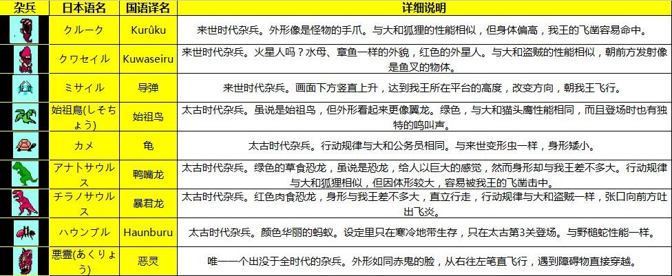 本作里的敌兵攻击力完全相同,我王每次受伤,只少一颗心。与FC三目童子的HP设定完全一样。