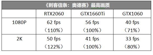 《刺客信条:奥德赛》的测试性能要求比《孤岛惊魂5》更高,因此在1080P最高画质下RTX2060也仅能保证刚好超过60fps,GTX1660Ti紧随其后,而GTX1060相差就比较大了。2K分辨率下,三款显卡的差距基本上是等差数列,定位也比较清晰。
