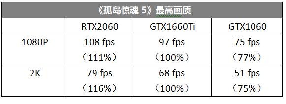 《孤岛惊魂5》测试中,GTX1660Ti相对于GTX1060的性能优势还是明显比RTX2060相对GTX1660Ti的优势大,而且在1080P最高画质下可以提供电竞级的游戏帧速。