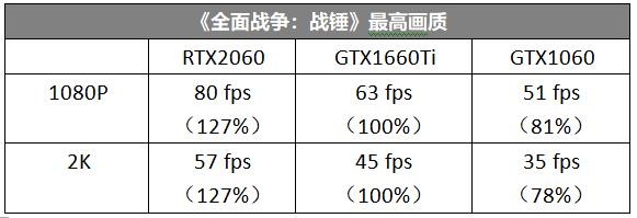 《全面战争:战锤》测试项的性能要求适中,GTX1660Ti在1080P最高画质下可以稳定保持在60fps以上,三款显卡的成绩差距基本上也是等差数列,而RTX2060在这项测试中的优势被略微放大了。