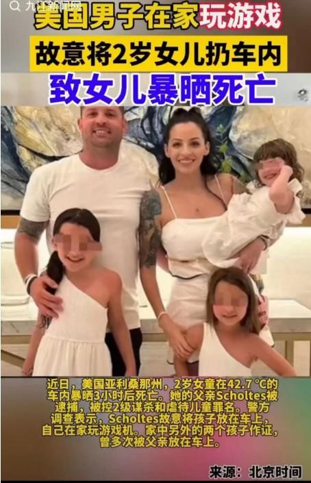 近日一则新闻引发众怒:美国一狠心父亲故意将2岁女儿锁在车内3小时致其死亡。