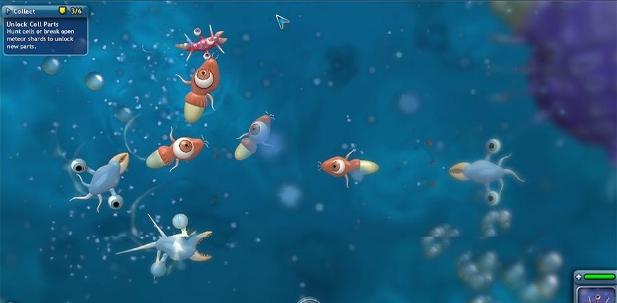三种不同的种族对应不同的难度,最难的当然是肉食,最简单的是杂食。肉食生物只能靠吃掉一些游离的肉类来获取食物,满足饥饿值和进化点,而素食就是采集水中的巨大海藻来获取资源。