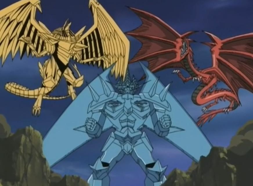 欧西里斯的天空龙,欧贝里斯克的巨神兵和拉的翼神龙是只有被选中的法老才能召唤出的三幻神,而事实证明被选中的人名叫阿图姆。
