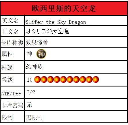 欧西里斯的天空龙作为主角暗游戏的招牌神之卡出场率非常高....但是战绩....(有些惨淡),而为了游戏平衡在实卡后也是大幅度修改了卡牌描述。但是不管怎么样,帅就够了不是么~