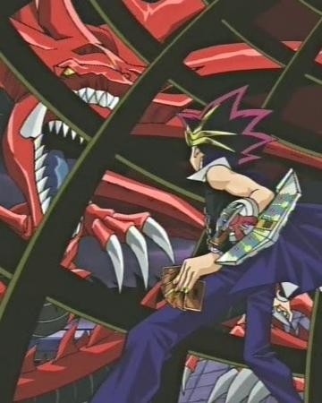阿图姆利用武藤游戏的陷阱卡效果召唤出了天空龙,但是在之后被击破。