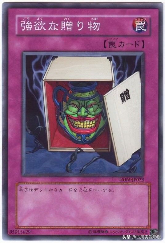 大家好,在游戏王中有一张很好用的抽卡神器,强欲之壶。但由于太好用,在世界级赛事2004变成限制卡,后来在2006年变成禁卡永久被关进小黑屋。