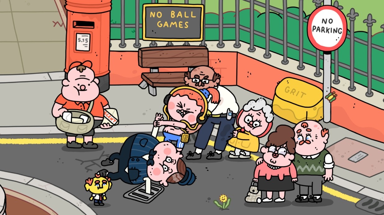 至于这款游戏的玩法,简单来讲就是《模拟大鹅》的进阶版,玩家虽然不是蓄意在小镇上搞破坏,但干的事跟大鹅也半差不离,再搭配上制作人天马行空的地狱笑话以及各种欧美俚语,整体上来讲是一部类似《南方公园》那样的混乱邪恶作品,但又不失童趣和欢乐。