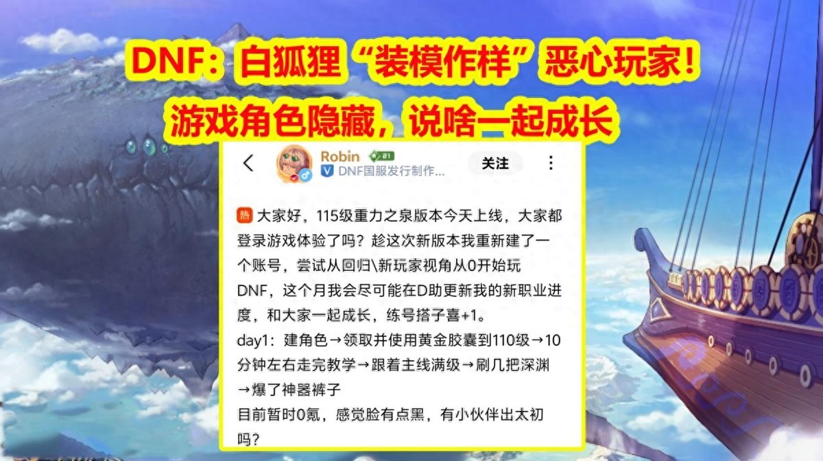 DNF:白狐狸“装模作样”恶心玩家!游戏角色隐藏,说啥一起成长