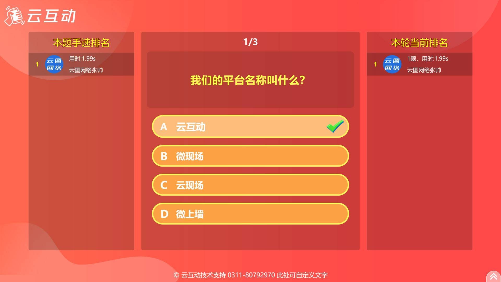 以上几个就是在云互动平台上使用最多的几个会议互动小游戏,其他的还包括3D赛马、抢红包、接金币游戏、切水果比赛等多个好玩的大屏互动游戏。