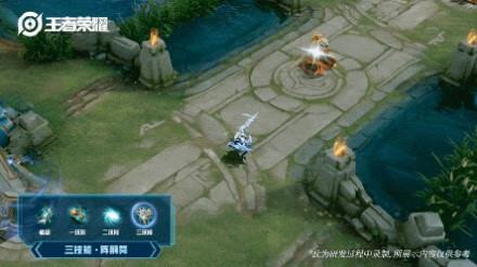 三技能:“注视,群星的指引!”三技能击中后,敌方身后出现巨大的水晶图腾,似雪花般转瞬即逝,破碎后化作点点星光在空气中逸散。