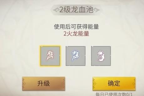我们每天可以试用一次龙血池的力量来获得强化自身龙之力的火龙能量,如果你拥有多头龙则可以自由选择获得的龙之力类别。