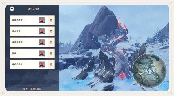 原神「忍冬之树」供奉至8级后,将解锁「绯红之愿」,解锁后每周一和周五将刷新5个绯红之愿任务,完成对应挑战,将获得绯红玉髓