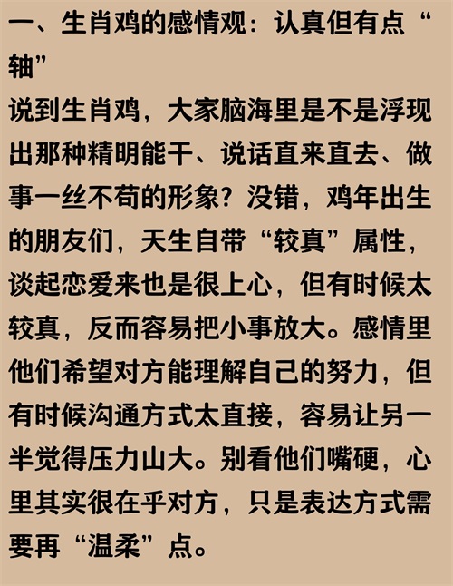 听说属鸡的朋友感情路有点坎坷,很多人都说他们容易遇到二婚的情况。到底是哪两段感情让他们难以逃脱“二婚命”?是不是你也在经历这样的故事呢?咱们一起来聊聊属鸡人的感情那些事儿!